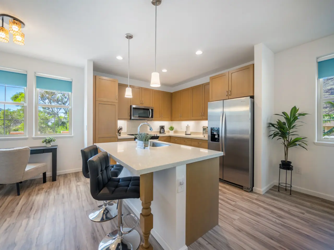 "We were able to make our breakfast and dine in the backyard enjoying the beautiful and serene scenery of the mountain and ocean. The place is very peaceful."